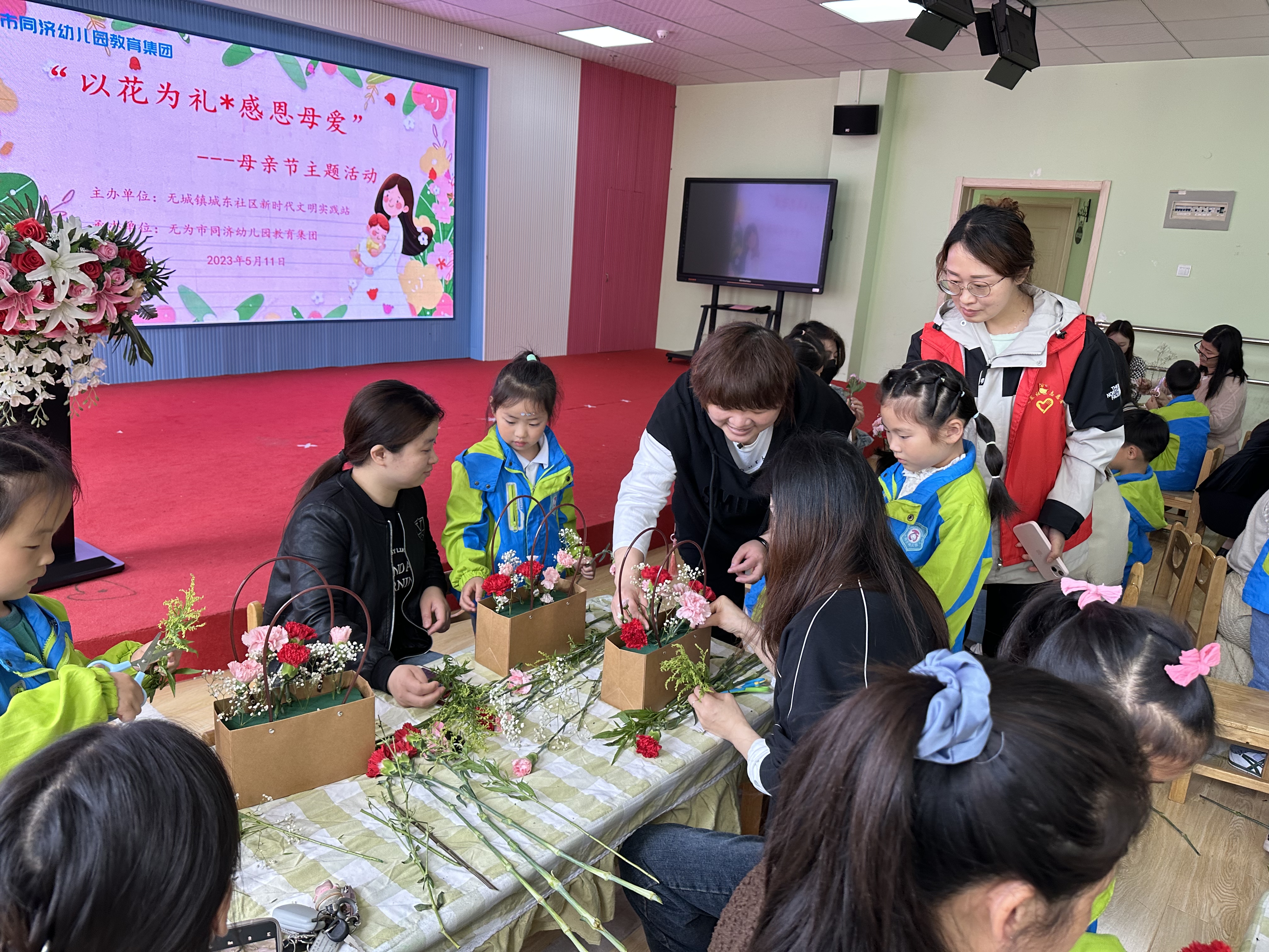 迎着五月的煦风,伴着初夏的明媚,为了让孩子们从小感受到母亲的伟大和无私,体验到母亲的辛劳,学会感谢母亲、感激生命、感恩生活。在母亲节来临前夕,5月11日上午,无城镇城东社区新时代文明实践站联合无为市同济幼儿园教育集团开展了一场别开生面的“以花为礼,感恩母爱”母亲节主题插花活动。