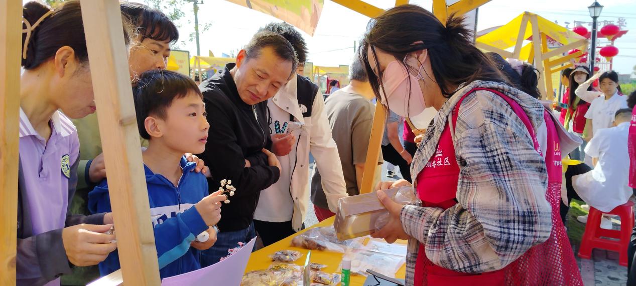 创意活动区充满了欢声笑语。指尖黏土摊位小课堂,孩子们用黏土塑造出各式各样的作品,从栩栩如生的农作物到勤劳的农民形象,深入感受了农耕文化,体会到劳动的辛苦与丰收的喜悦。五谷杂粮“画”丰收摊位上,居民们用大米、黄豆、小米等五谷杂粮,通过粘、贴、拼、雕等方式,创作出一幅幅丰收盛景、青山绿水的奇幻画面,仿佛把丰收的美景定格在了画布上。节气种子标本 DIY 摊位,让大家制作果实花草的种子标本,增进了对自然界生态多样性的认识,激发了对农耕文化和植物?;さ男巳ぃ泻秃胙镒排└幕?。