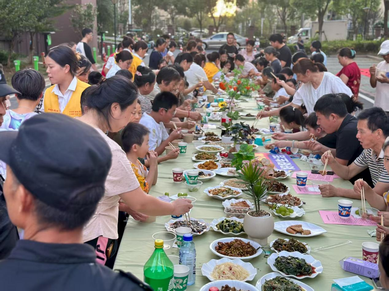 随后,邻里宴正式开席。居民们端上自家菜肴共享,原本互不熟悉的邻居们围坐一桌,边吃边聊,从菜品做法谈到生活趣事,气氛格外融洽。