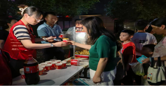 志愿者团队在活动中也发挥了重要作用,他们全程贴心服务。义诊摊位前,医护志愿者一丝不苟地为居民测量血压,并耐心地给予居民健康指导。另一边,居民们围坐在一起,在光影的流转中,一同沉浸在精彩的剧情里,志愿者们热心地将刚出锅的爆米花与清凉饮料一一递到居民手中,让大家在享受欢乐时光的同时,也感受到无微不至的关怀。