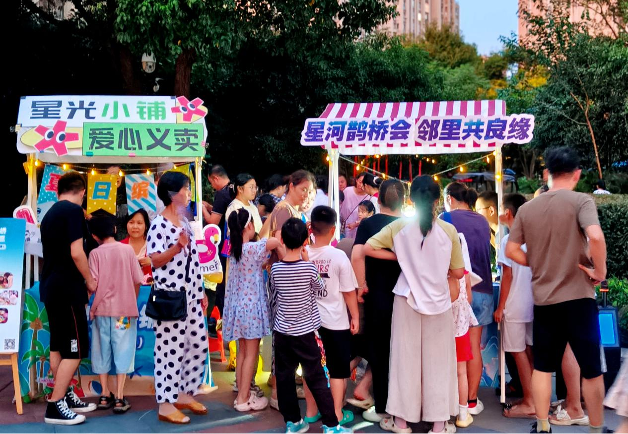 8月27日晚,双桥社区联合美至嘉物业在中俊理想城A区西门组织开展“‘星河鹊桥会·邻里共良缘’——我们的节日·七夕”主题活动,吸引众多居民热情参与。