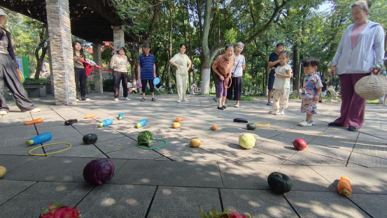 活动现场,居民们排着整齐的队伍,眼神紧紧盯着前方摆放的新鲜蔬菜,轮到自己时,屏住呼吸、瞄准投掷,套中的欢呼声与没套中的打趣声交织在一起。等待的间隙里,大家也不闲着,熟络地分享着套圈小技巧:“手要稳,瞄准蔬菜根部扔”“力度轻一点,圈才不容易弹开”,你一言我一语,陌生感在不知不觉中消散。