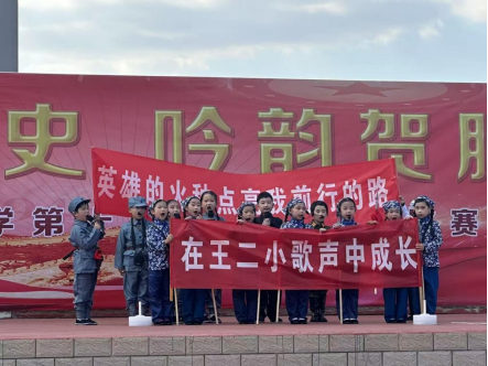 比赛现场,少年宫学员们的表现惊艳全场。403班学员以《歌唱祖国》拉开序幕,嘹亮的歌声与整齐的手语表演点燃全场爱国热情;103班学员演绎的《少年英雄王二小》,通过稚嫩却坚定的讲述与生动的情境再现,让在场师生重温烽火岁月的英雄故事。301班《故事里的英雄,我们的光》、604班《心中的旗帜》等节目,在少年宫老师指导下,将诵读与肢体语言、背景视频完美融合,既展现了经典文本的魅力,更传递出坚定的信仰力量。