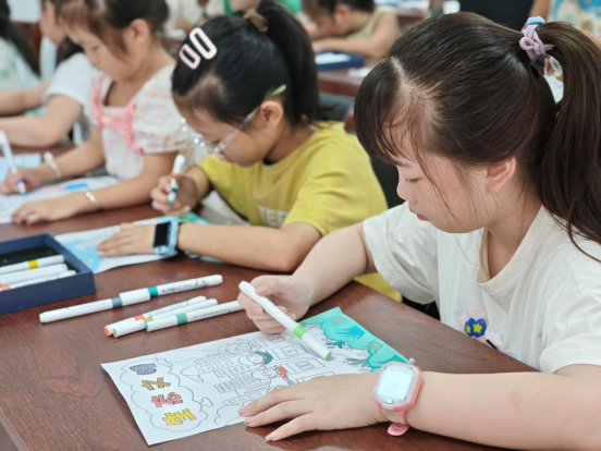 近日,花间渡学堂精心组织了一场以“守护绿色家园”为主题的绘画课堂?;疃殖?,孩子们用手中的画笔为生态画涂色,在色彩与创意的碰撞中,感受自然之美,传递环保理念。